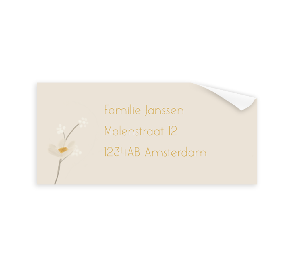 Maak je envelop compleet met deze adressticker. De sticker heeft een beige achtergrond met bloemen. Pas de adressen gemakkelijk zelf aan. Ieder vel bevat twaalf adresstickers.