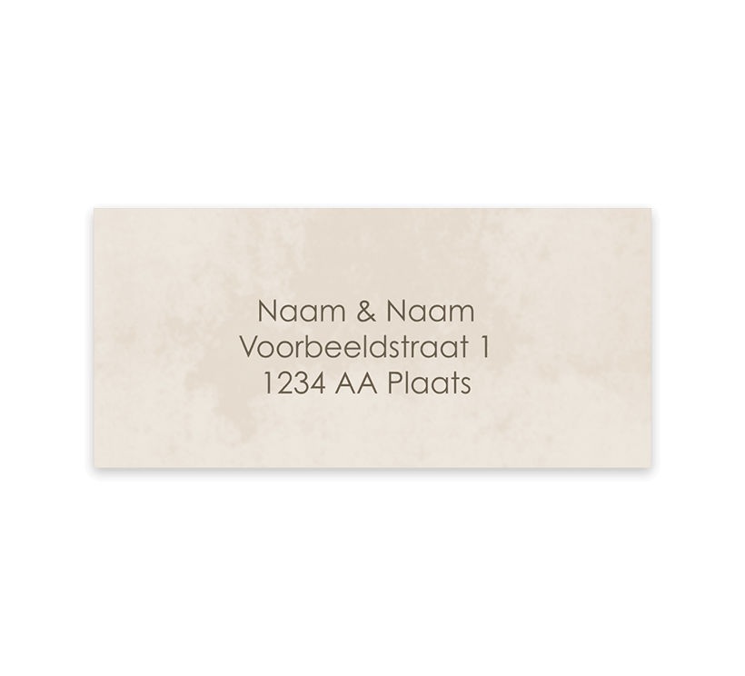 Een schattige bijpassende adressticker bij het geboortekaartje van jouw kindje. Deze sticker heeft een beige velvet-look achtergrond. Pas de adressen zelf gemakkelijk aan.