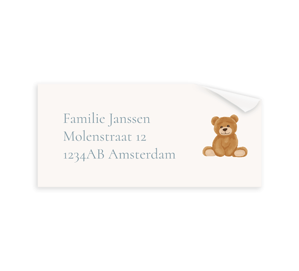 Vrolijke adresetiketten met beren voor geboortekaartjes. Personaliseer ze eenvoudig in onze online editor.