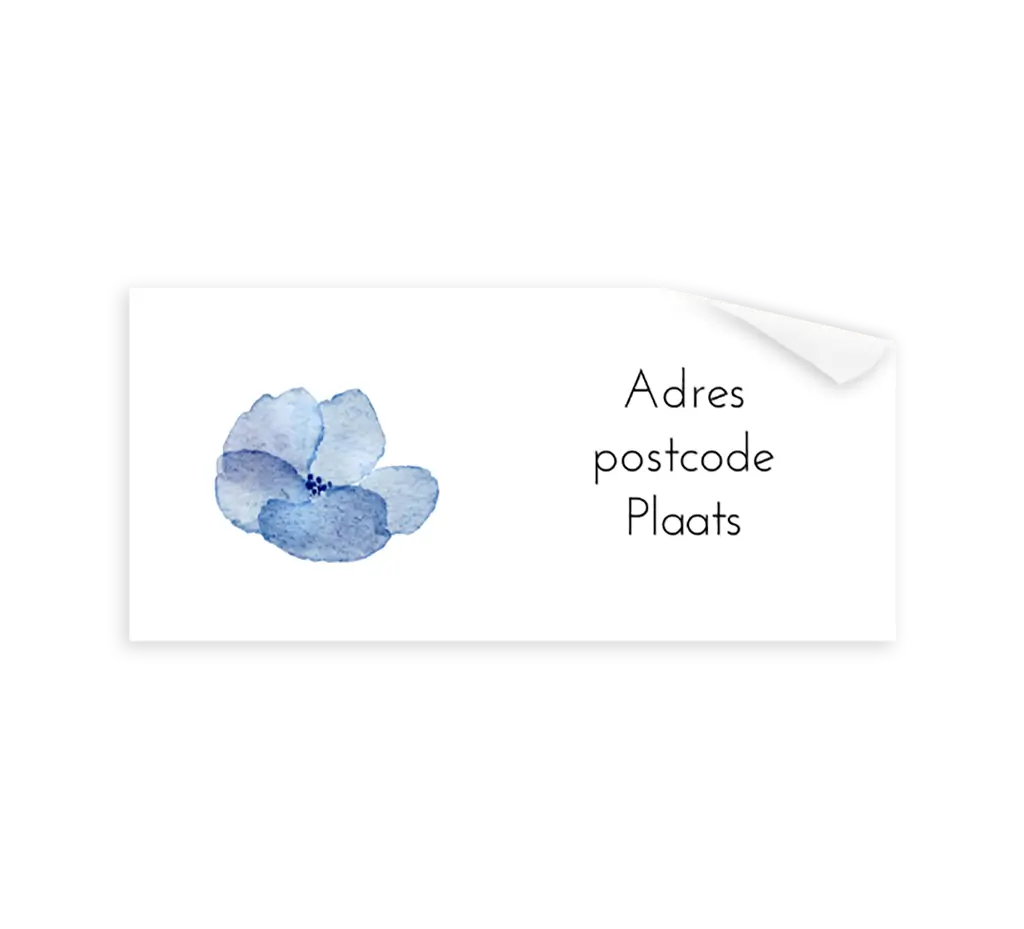 Verzend de geboortekaartjes in stijl met deze adressticker! Op de adressticker staat de delfts blauwe watercolour illustratie van een bloem. In onze online editor kan op iedere sticker een ander adres ingevuld worden.