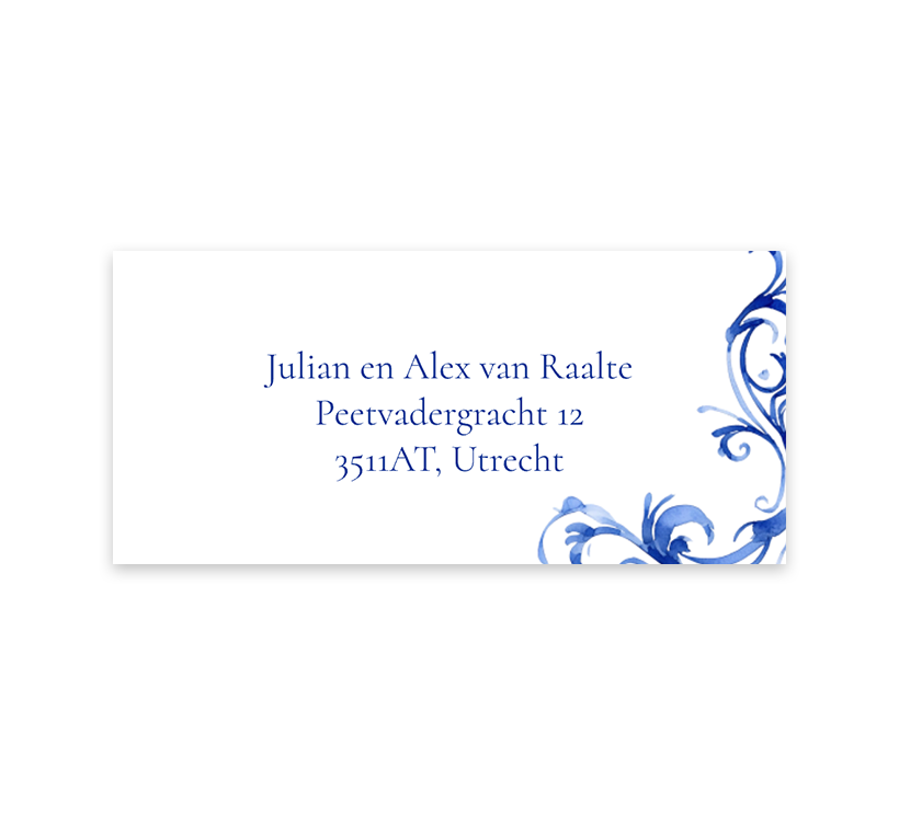 Stijlvolle adressticker met delfts blauw