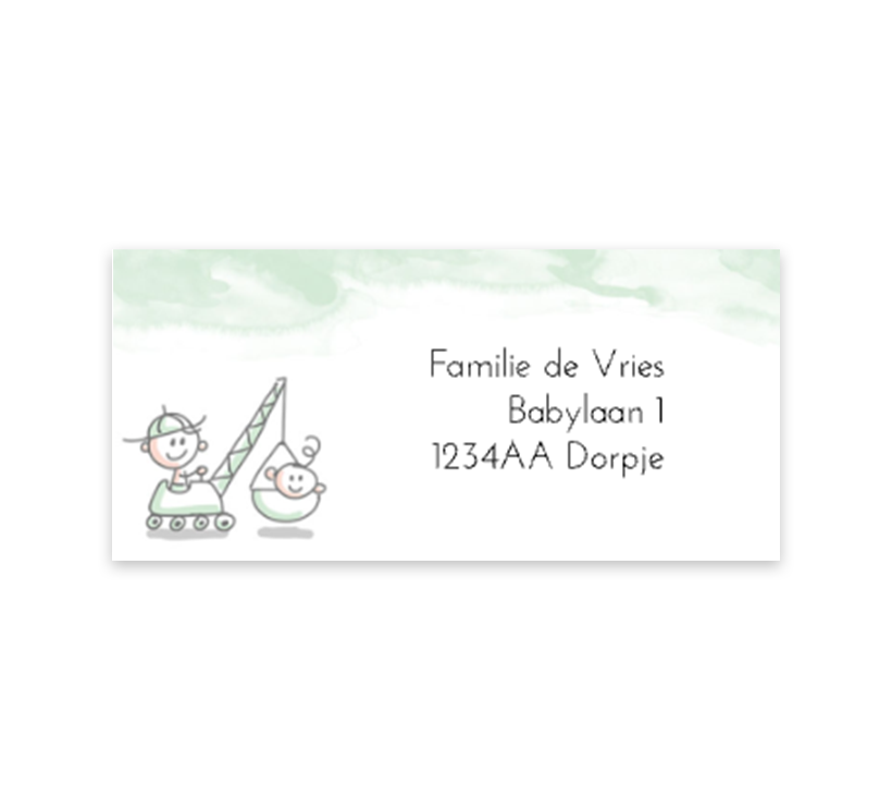 Adressticker groene watercolour met illustratie broertjes