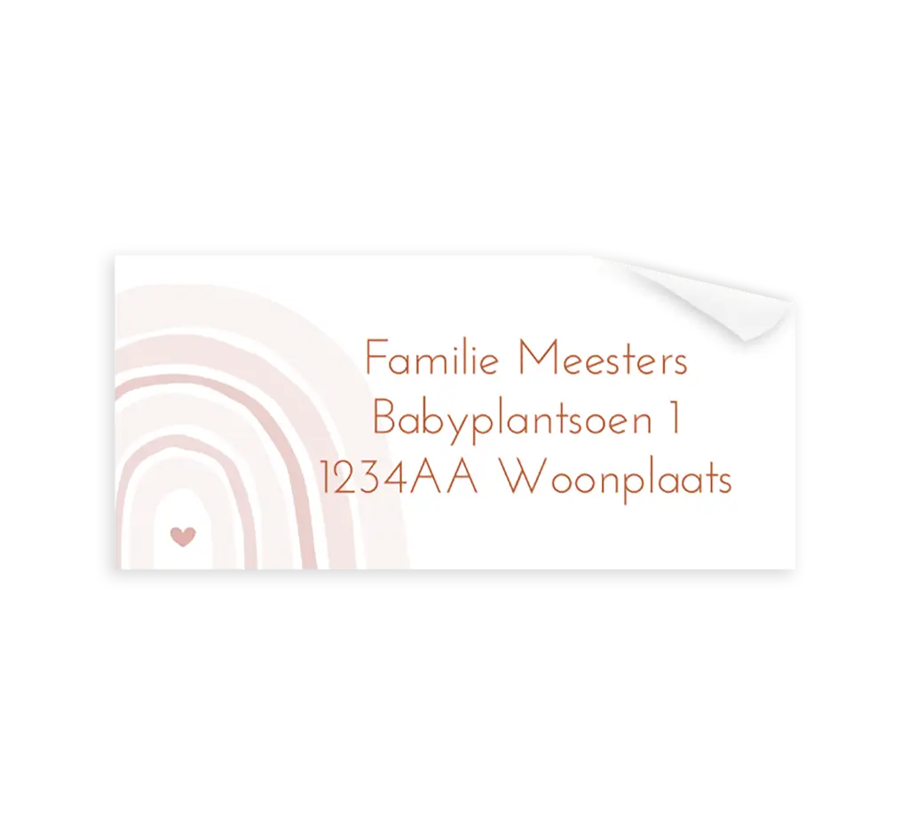 Adressticker met hartje en roze regenboog