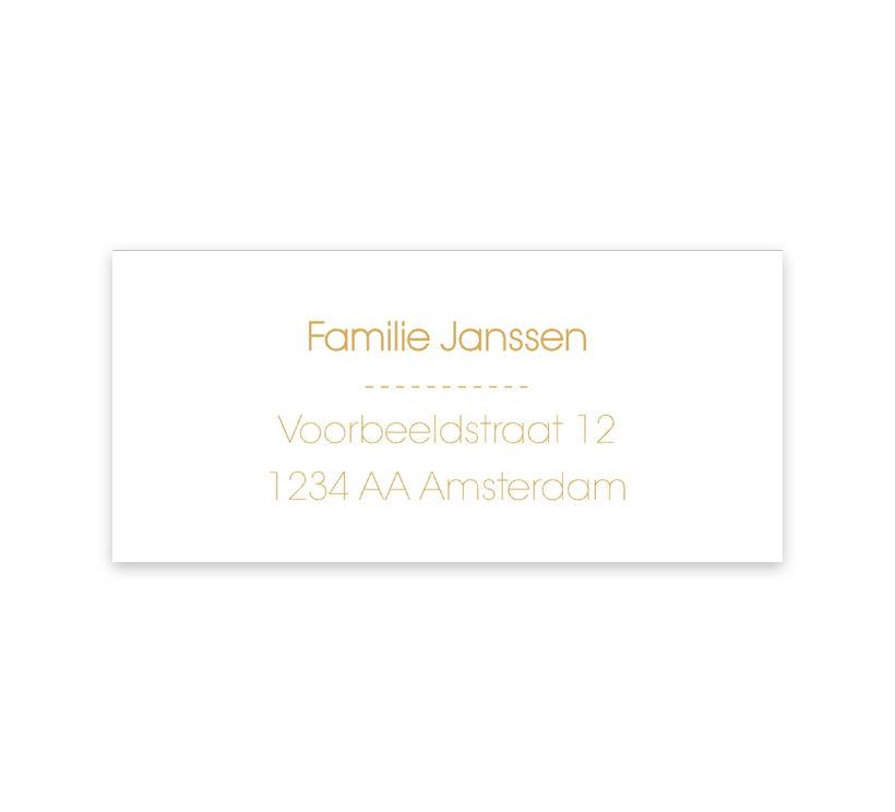 In de online editor pas je de adressen op deze stickers zelf gemakkelijk aan, handig om de kaartjes snel te versturen. De tekst is in goudkleur, dat past mooi bij het geboortekaartje met de foliedruk.