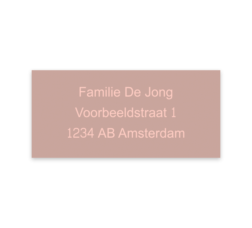 Deze adresstickers hebben een oudroze achtergrond met roze typografie. Het ontwerp van de stickers kan helemaal naar wens aangepast worden in onze online editor. Ook kunnen daar de juiste adressen ingevuld worden. Ieder vel bevat twaalf adresstickers.