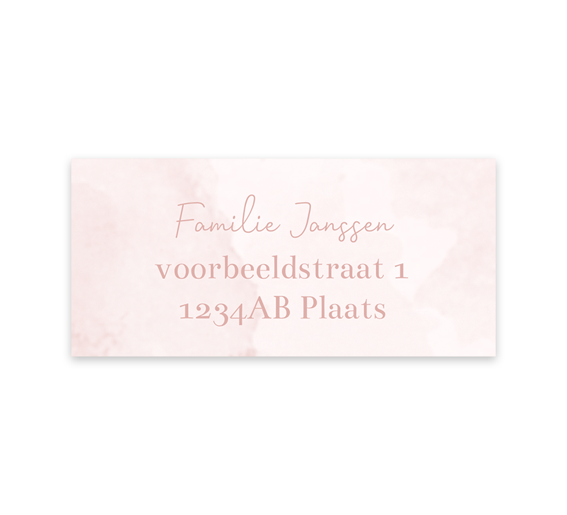 Deze adresstickers hebben een lichtroze achtergrond met watercolour. Het ontwerp van de stickers kan helemaal naar wens aangepast worden in onze online editor. Ook kunnen daar de juiste adressen ingevuld worden. Ieder vel bevat twaalf adresstickers.