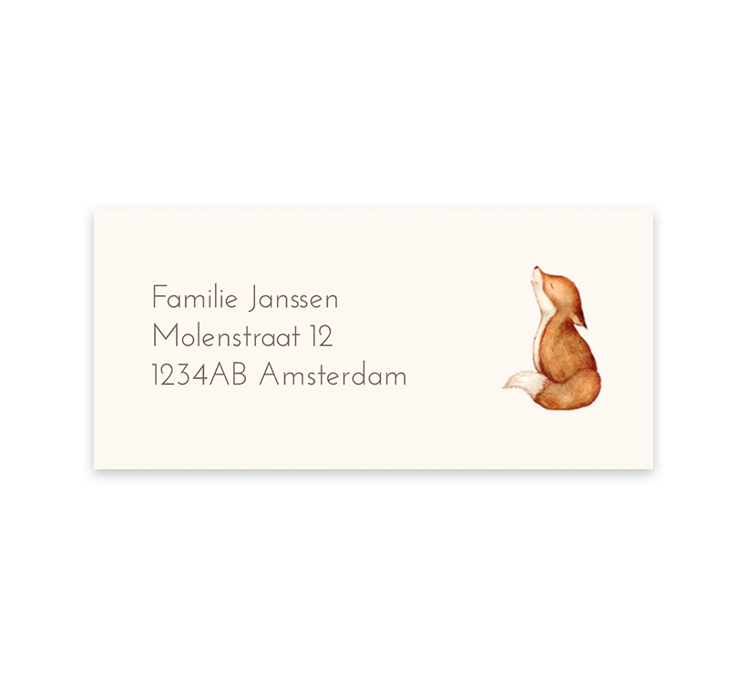 Deze adresstickers zijn geheel zelf te ontwerpen! Op de sticker staat een lieve illustratie van een vosje. In onze online editor kan je de adressen aanpassen.