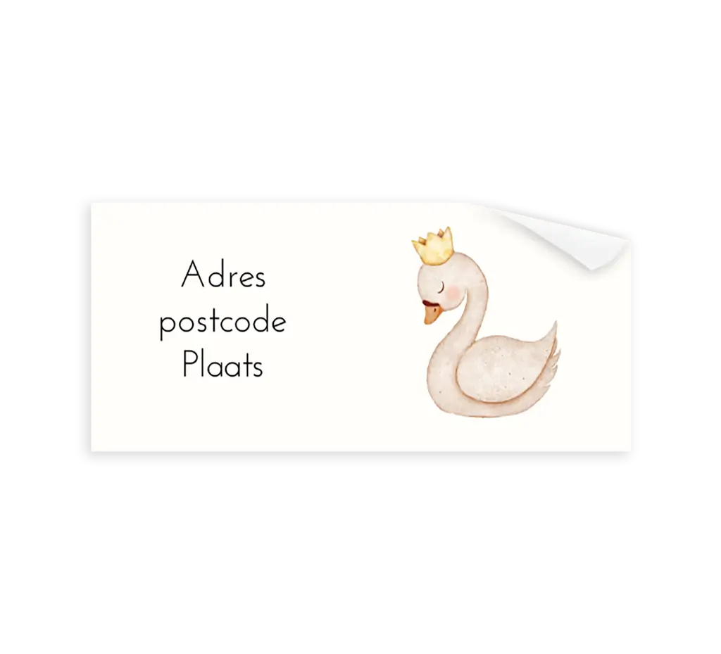 Adressticker met lief zwaantje met kroon of strikjes