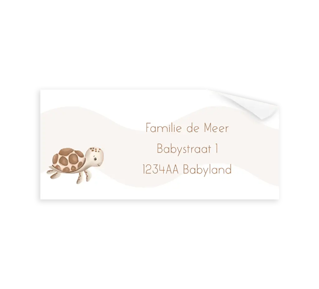 Deze adresstickers hebben de illustratie van een zeeschildpad op beige golfjes! In onze online editor kan op iedere sticker een ander adres ingevuld worden. Toch liever een ander ontwerp? Ook dat kan in de editor aangepast worden.
