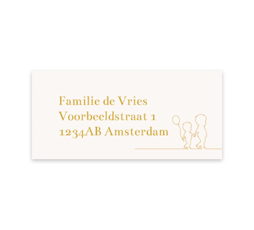 Een schattige bijpassende adressticker bij het geboortekaartje van jouw kindje. Deze sticker heeft een creme kleurige achtergrond met daarop een lieve lijntekening van twee silhouetjes. Pas de adressen zelf gemakkelijk aan. Elk vel heeft 12 adresstickers.