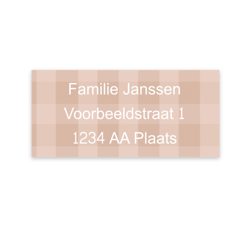 Hippe adresstickers met oudroze ruitjespatroon. De tekst is gedrukt in het wit, in de editor kun je per vel 12 adressen invoeren.
