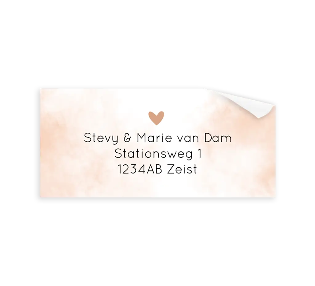 Adressticker met peach watercolour en hoogglans hartje