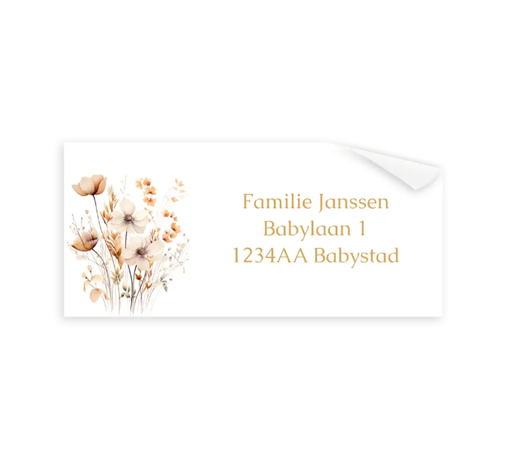 Een romantische adressticker voor op de envelop. De witte achtergrond laat de bloemen prachtig uitkomen. Pas het ontwerp naar wens aan in onze online editor.