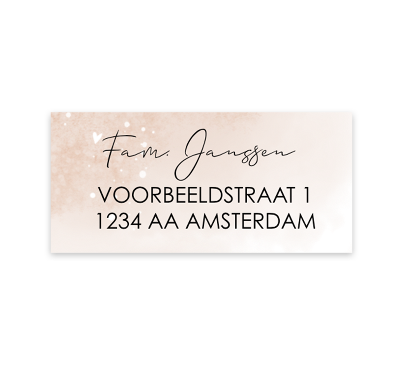 Adresstickers met roze watercolour en spetters