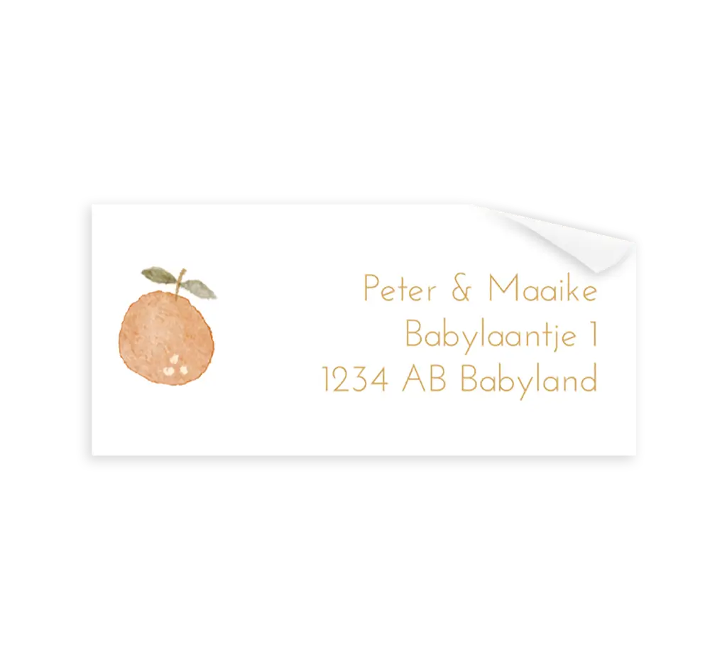Hoe leuk zijn deze vrolijke adresstickers met de illustratie van een sinaasappel erop. In onze online editor kan op iedere sticker een ander adres ingevuld worden. Toch liever een ander ontwerp? Ook dat kan in de editor aangepast worden.