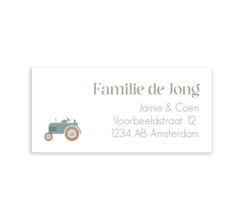 Adressticker met tractor