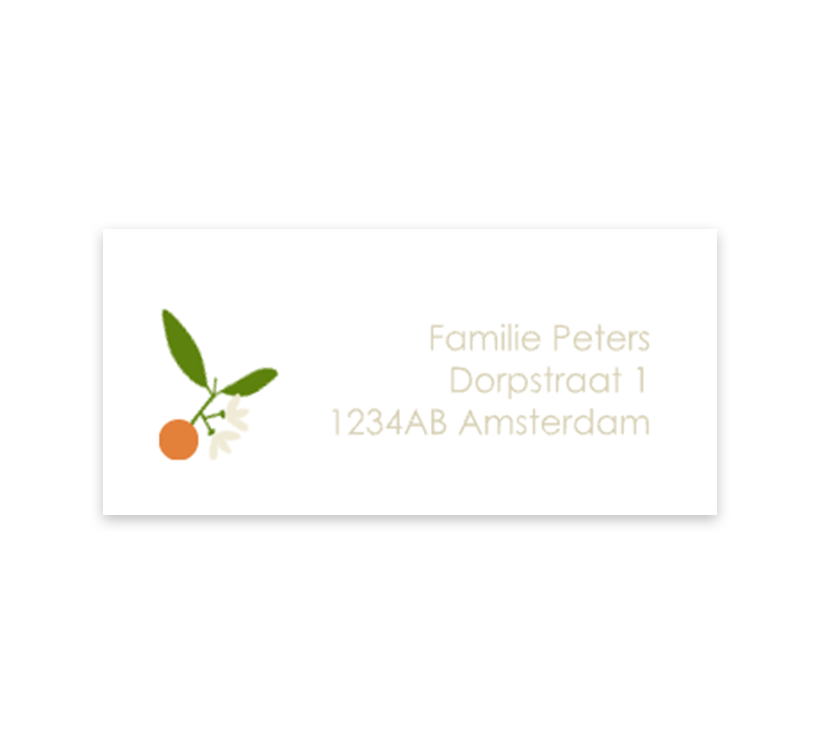 Adressticker wit met sinaasappel