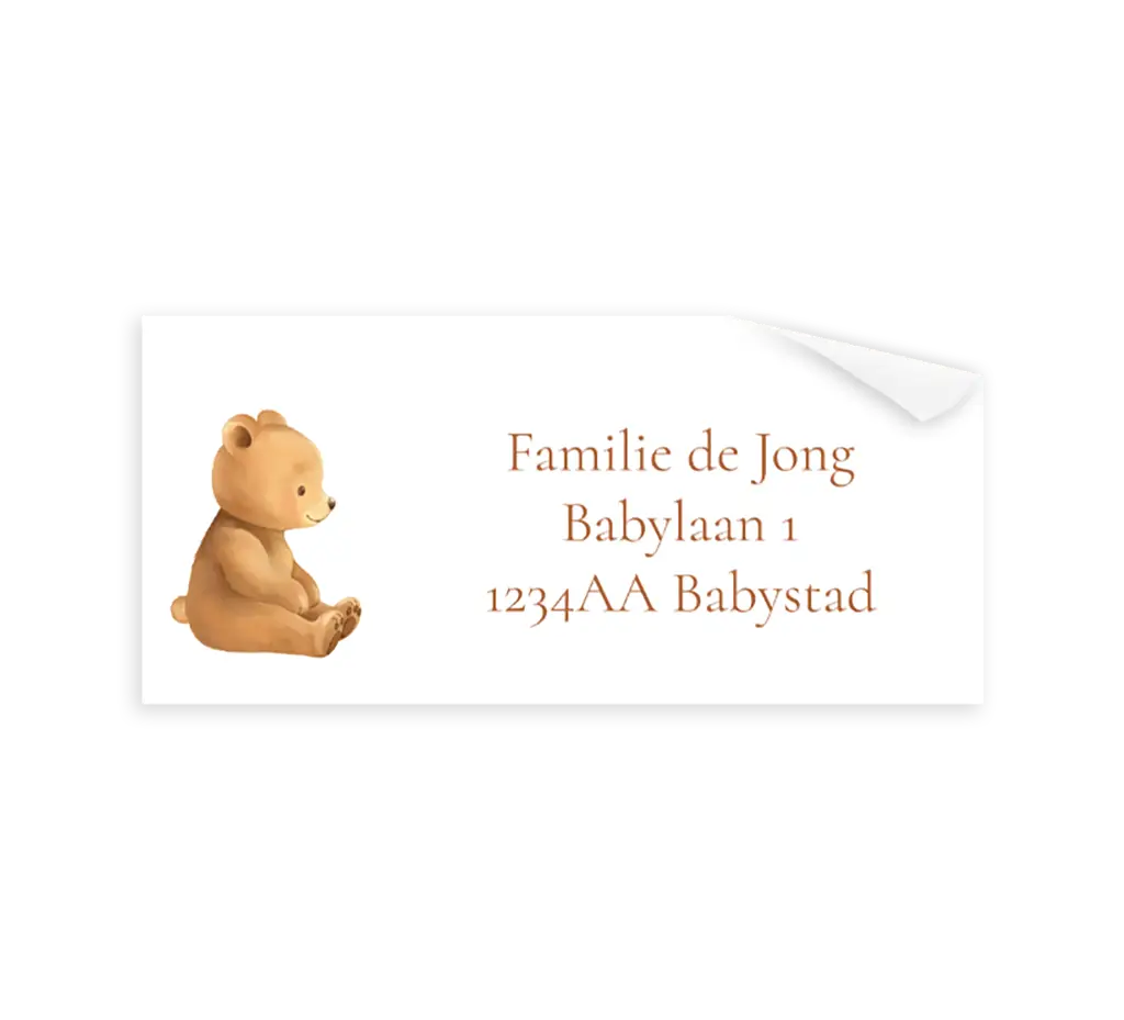 Schattige adressticker met bruine teddybeer. Pas de adressen aan in de online editor en bestel.