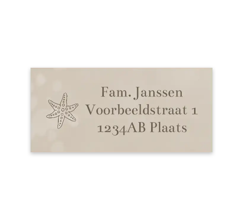 Adresstickers met beige velvet-look en zeester