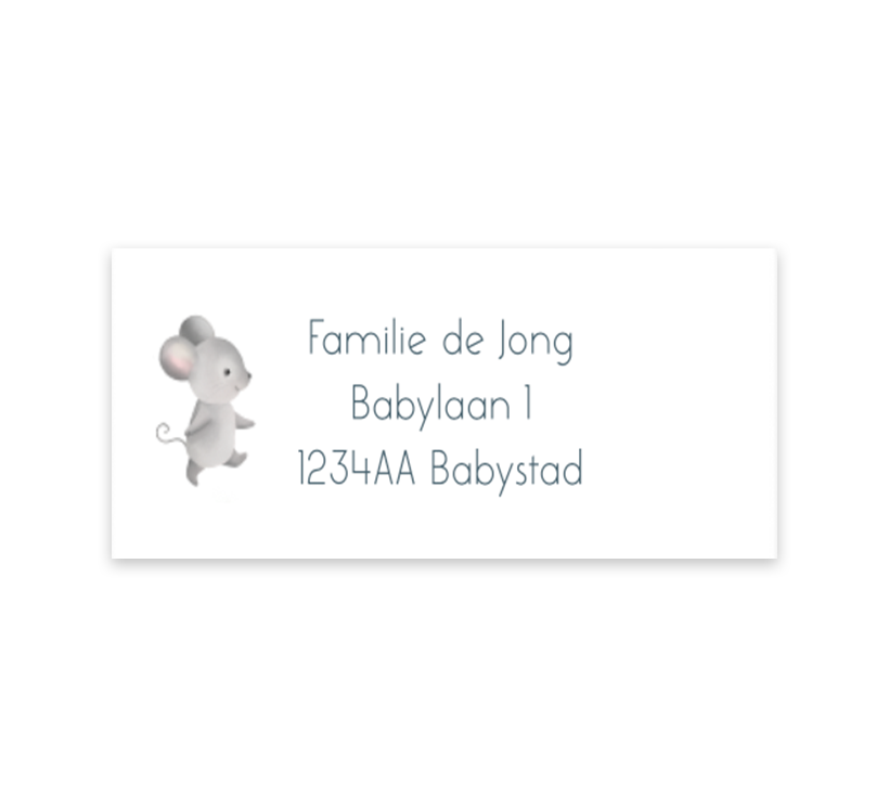 Maak het versturen van de geboortekaartjes extra makkelijk met deze adresstickers! Op de stickers staat de illustratie van een schattig muisje. De stickers zijn helemaal naar wens aan te passen in onze online editor.
