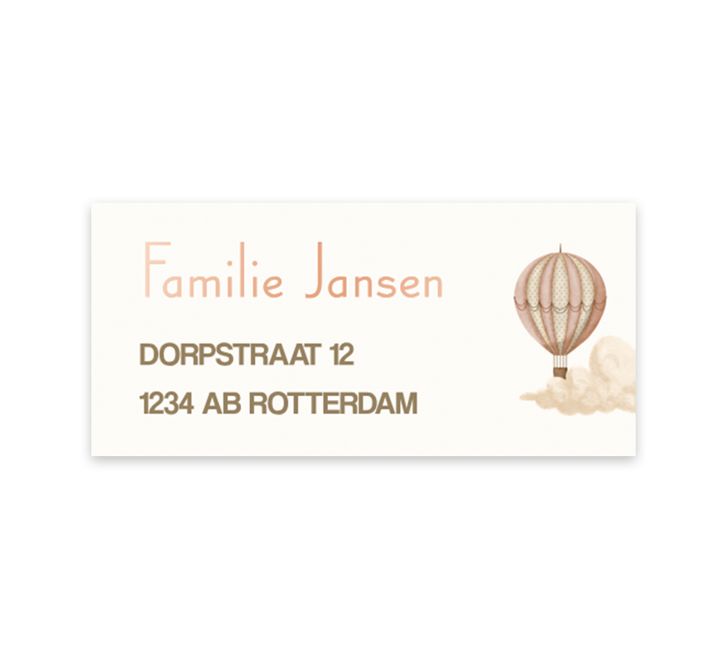 Adresstickers met luchtballon en tekst in roségoudfolie