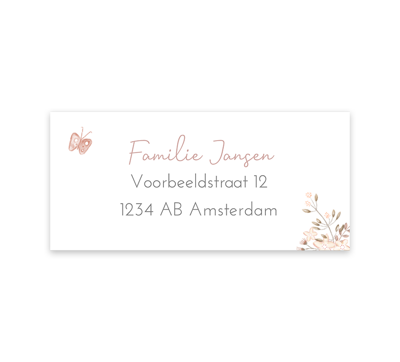 Adressticker met bloemetjes en vlinder