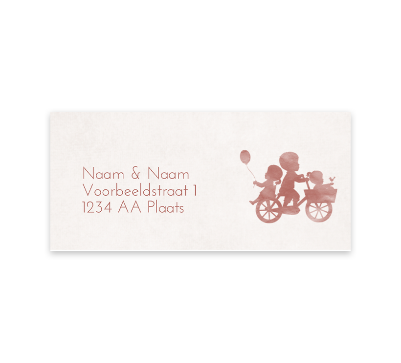 Wat een leuke adresstickers. Deze adresstickers hebben een lieve illustratie van drie silhouetjes op de fiets. Er is een zusje op komst! Pas de adresstickers naar wens aan in onze online editor.