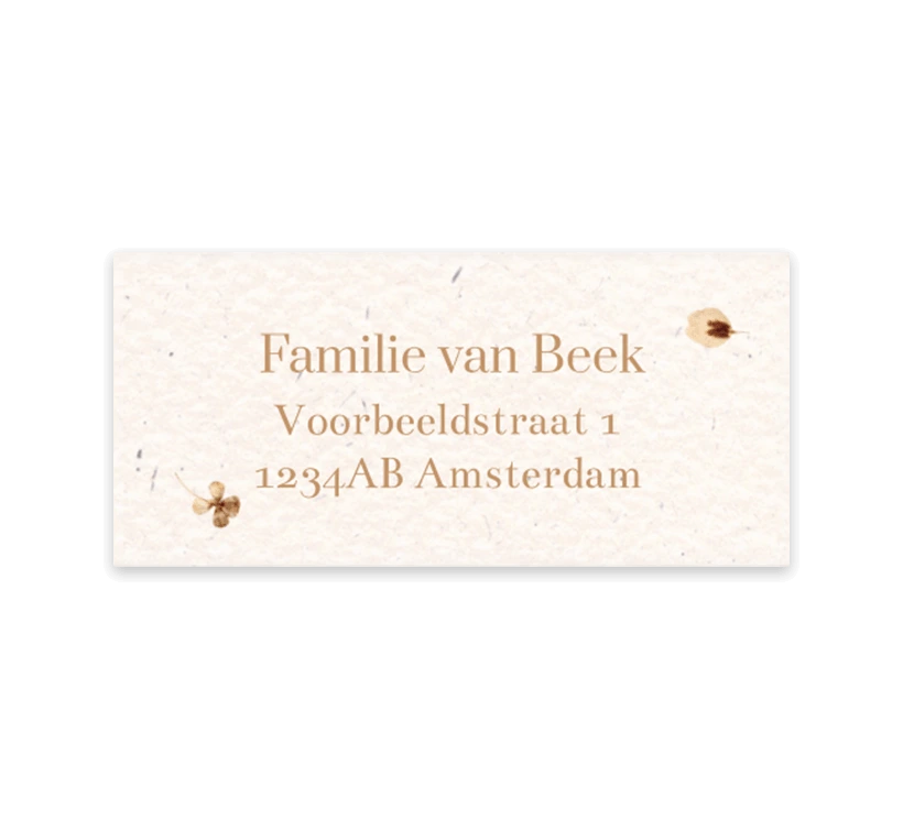 Een stijlvolle adressticker voor op de envelop van jouw geboorteaankondiging. De stickers hebben een natuurlijke uitstraling met schattige bruine droogbloemen.