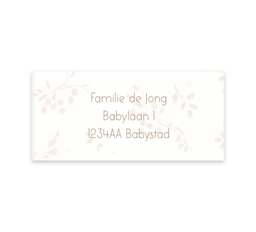 Het verzenden van de kaartjes wordt extra makkelijk met deze adresstickers! De stickers hebben een witte achtergrond met een patroon van kleine takjes. Pas de stickers helemaal naar wens aan in onze online editor.