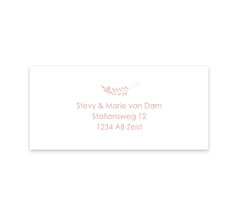 Verstuur jullie geboortekaartjes met deze bijpassende adreslabels, zo heb je een mooi geheel! Boven de tekst staat een lief oudroze takje. Pas de adressen aan in de online editor en bestel.