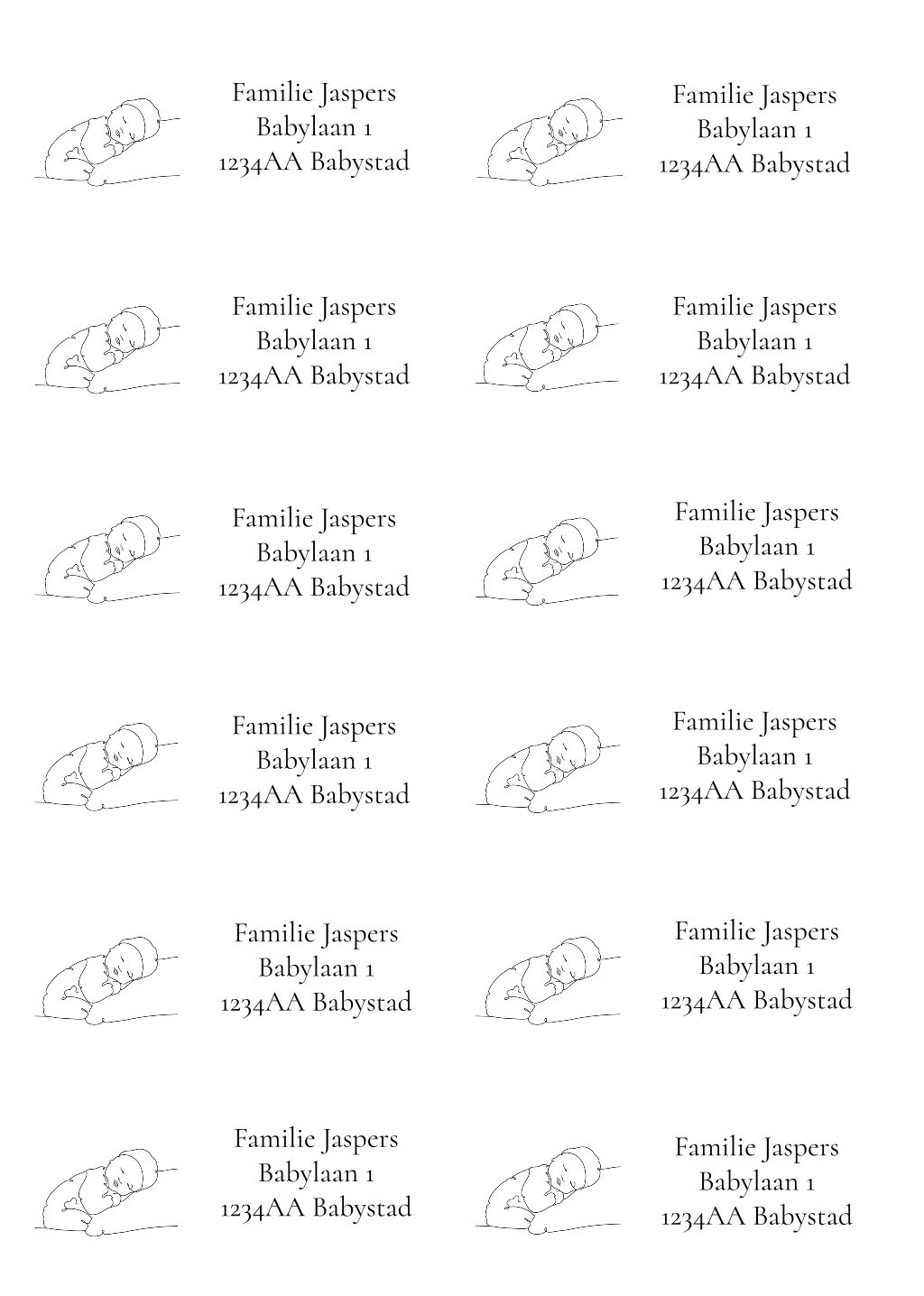 Wat een schattige adressticker! De sticker heeft een witte achtergrond met daarop de lijntekening van een baby. Pas het ontwerp naar wens zelf aan.