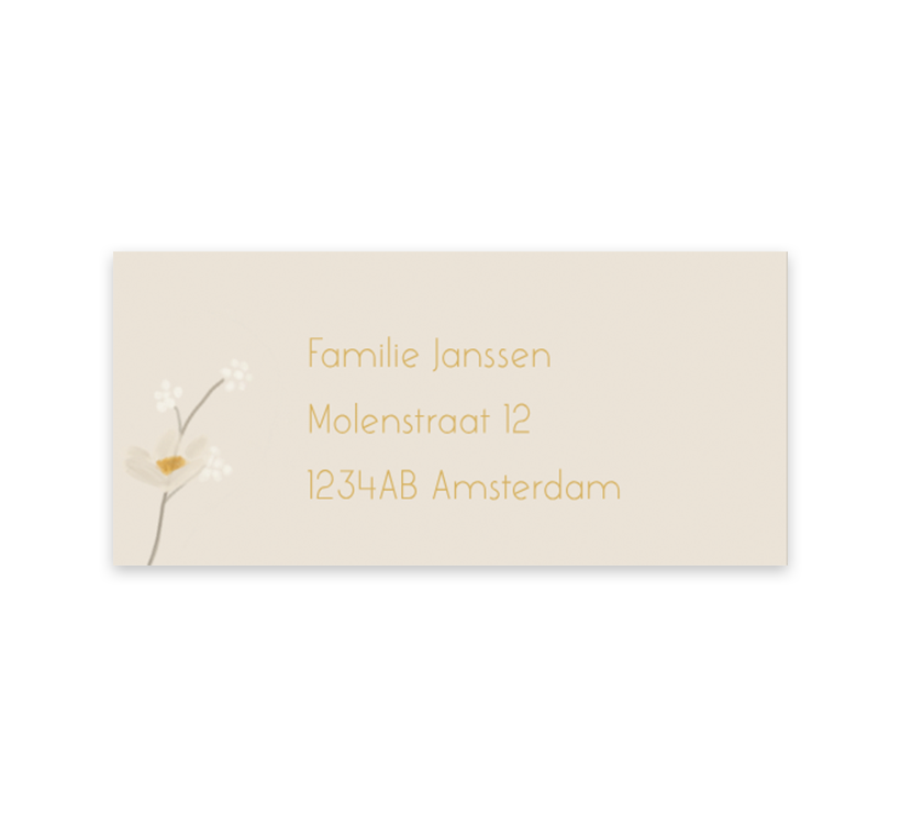 Beige adressticker met bloemenslinger