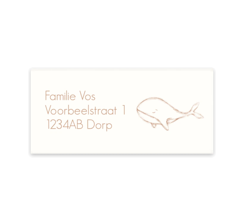 Verzend de geboortekaartjes in stijl met deze adresstickers. Op de stickers is de lijntekening van een walvisje te zien. De stickers kunnen helemaal naar wens aangepast worden in onze online editor.