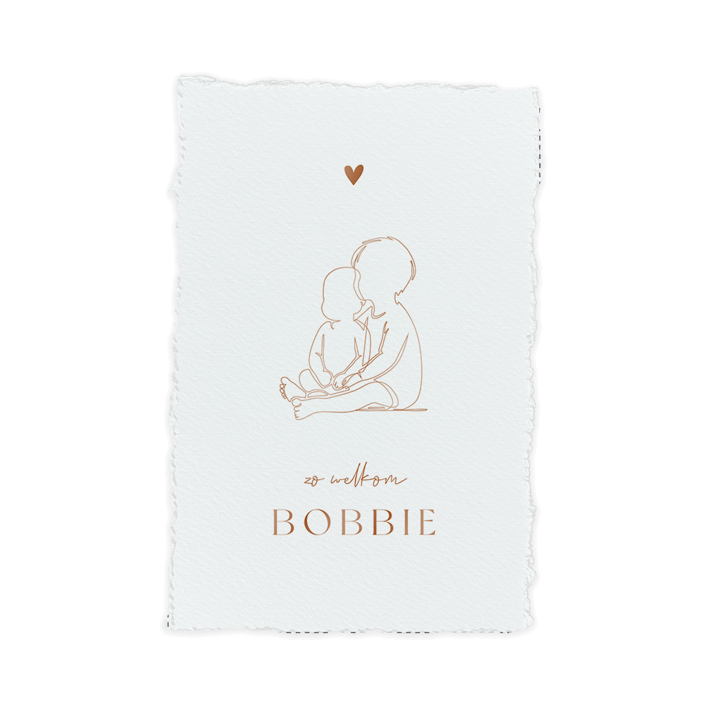 Wat een lief geboortekaartje! Dit kaartje heeft een stijlvolle en minimalistische uitstraling met de lijntekening van twee broers. Het kaartje heeft een geschept papier look die je zelf aan het kaartje geeft. Al onze kaartjes met handgeschept papier vind je hier.