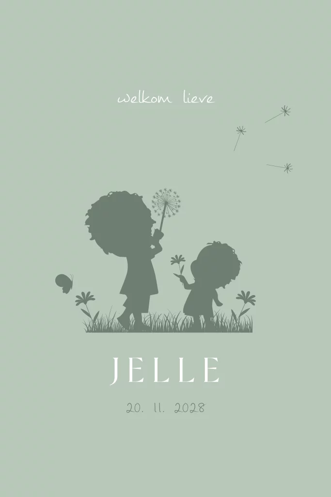 Dit is een lief kaartje voor jullie pasgeboren zoon en broertje. Op het kaartje zijn de silhouetjes van een grote broer met zijn kleine broertje te zien. Het kaartje kan helemaal naar wens aangepast worden in onze online editor.