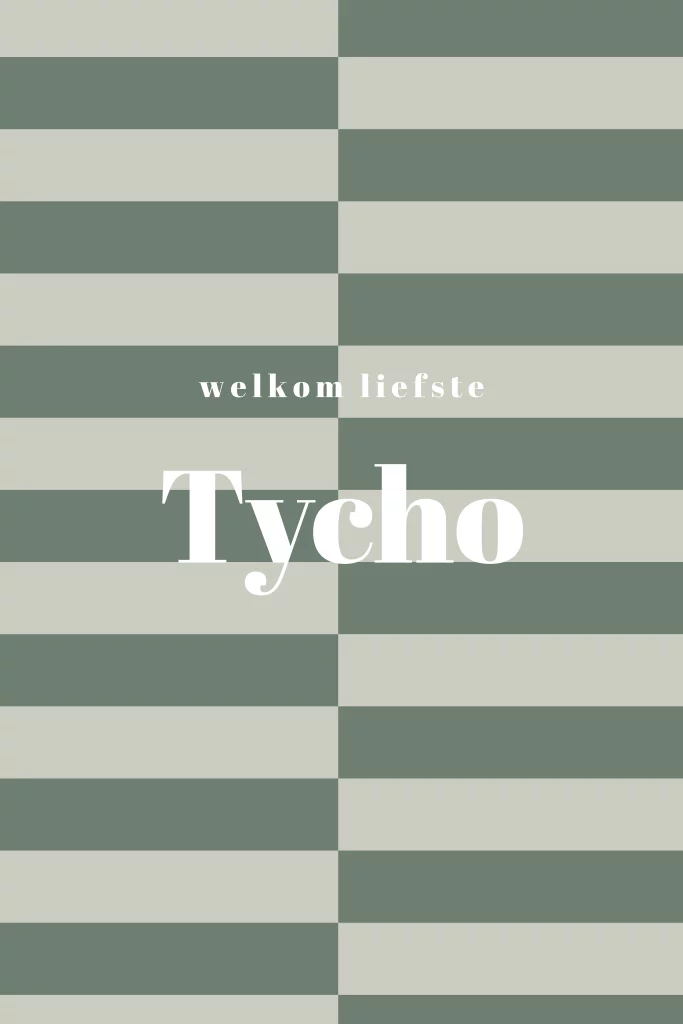 Een hip geboortekaartje voor een jongen. het kaartje heeft een groen streepjes patroon. Het ontwerp is naar wens aan te passen in onze online editor.