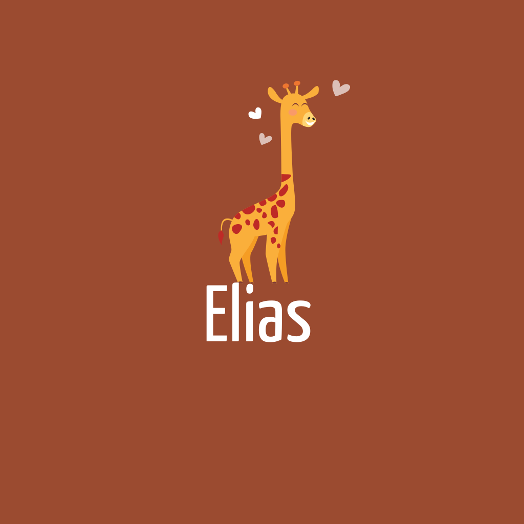 Origineel geboortekaartje voor je zoon met vrolijke illustratie van giraffe op roestbruin.