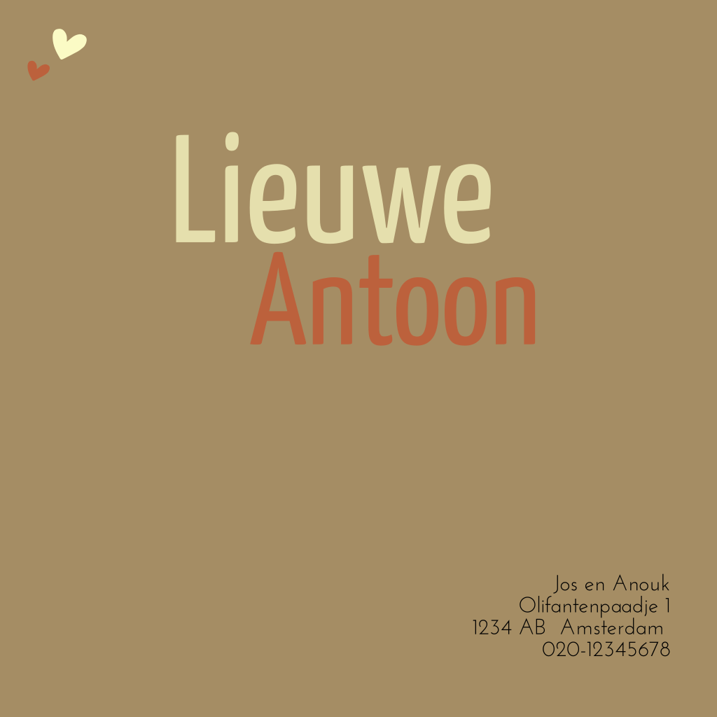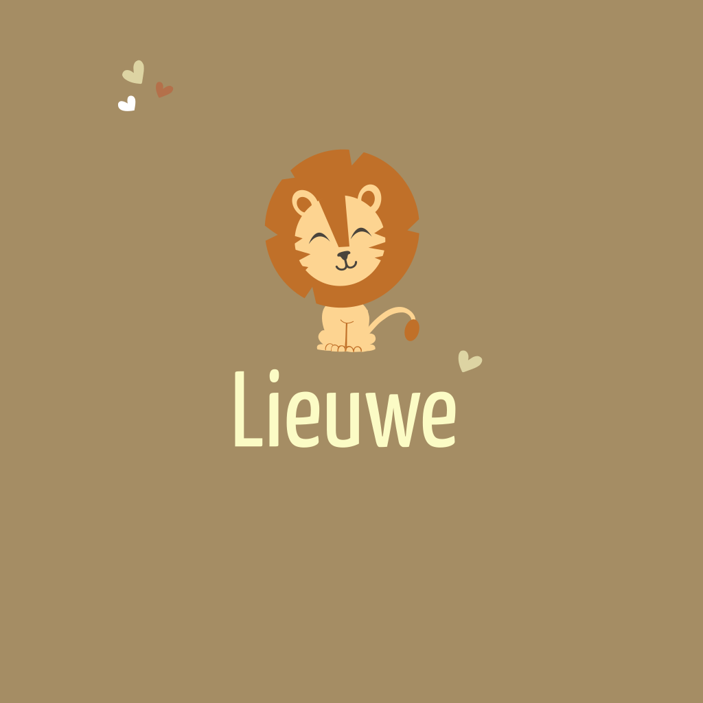 Minimalistisch geboortekaart jongetje leeuw op bruin met hartje