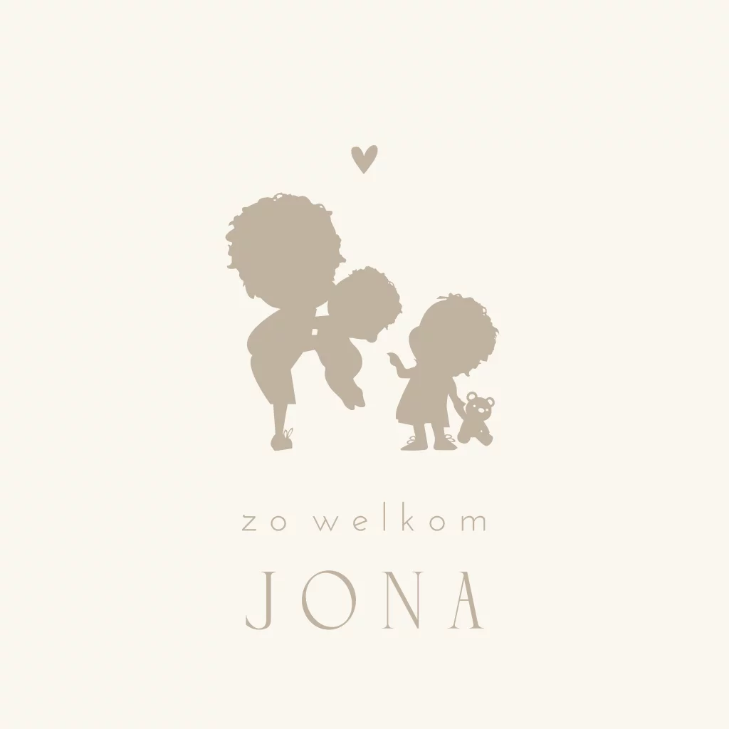 Dit is een lief kaartje voor jullie pasgeboren zoon en broertje. Op het kaartje zie je de silhouetjes van twee grote broers met hun kleine broertje. Ook zo'n fan van dit kaartje? Bestel een proefdruk en bewonder het kaartje in het echt.
