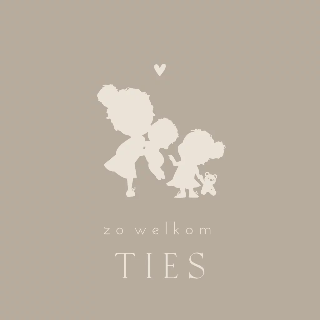 Illustratief geboortekaartje met silhouetten van zussen met broertje