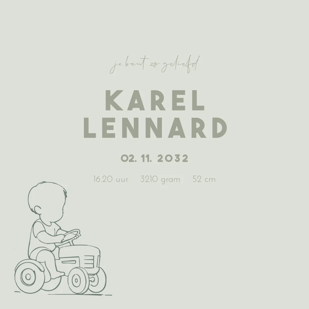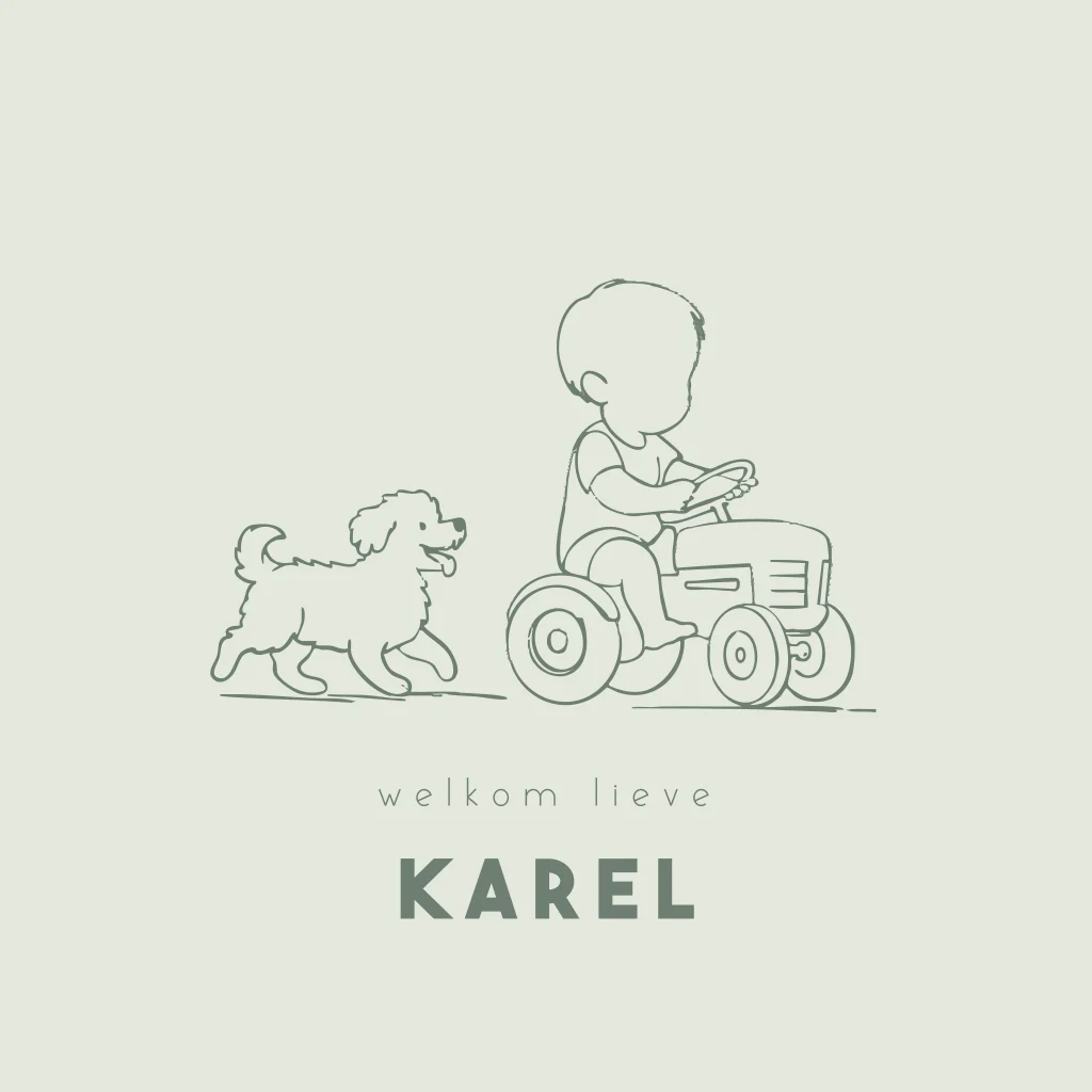 Geboortekaartje traktor hond labradoodle lijntekening silhouet