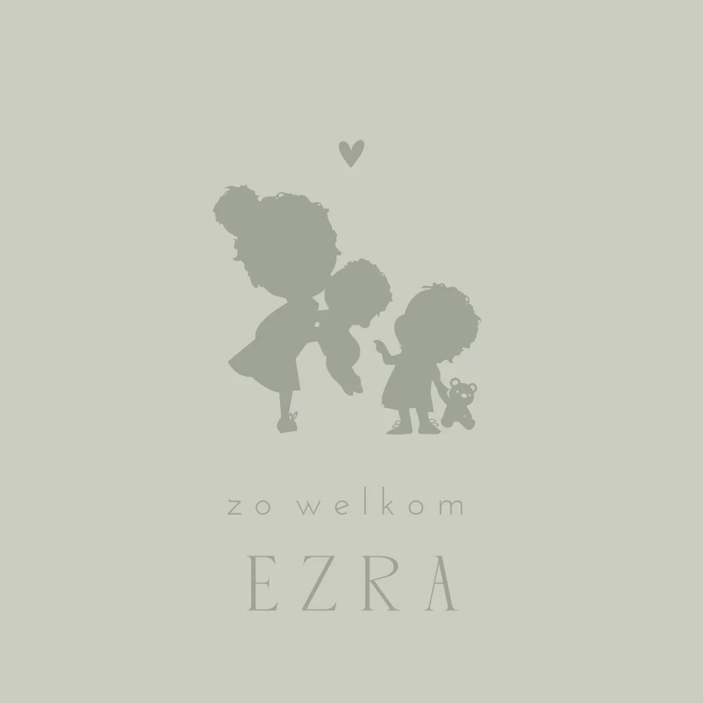 Lief geboortekaartje met silhouetjes van zus, broer en broertje