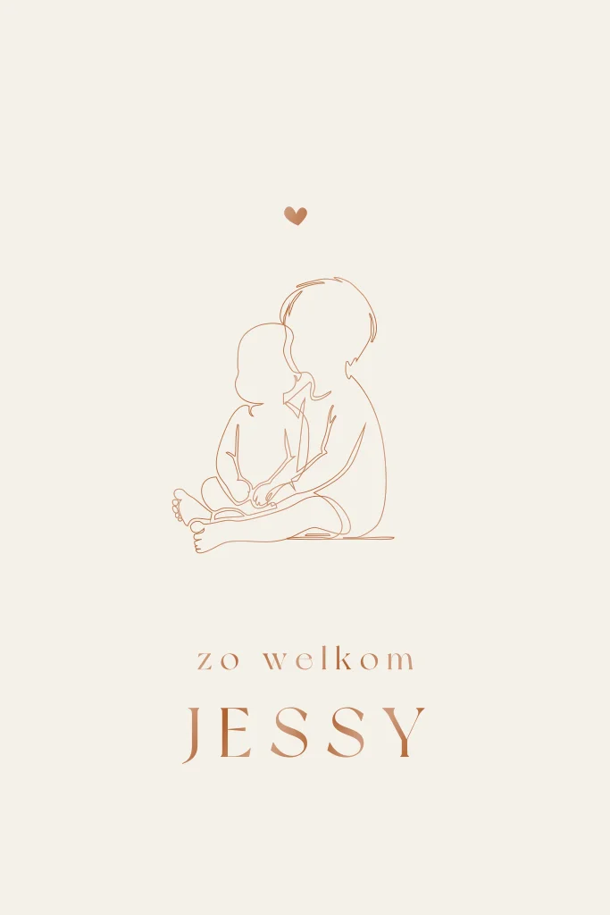 Welkom lief broertje! Dit stijlvolle en lieve kaartje is perfect als je een tweede jongetje verwacht. Je ziet een prachtige lijntekening van twee broertjes die samen zitten. Het kaartje heeft mooie hoogglans details. Pas het ontwerp naar wens aan in onze online editor. #kimberlyPlaats zelf de teksten en elementen eenvoudig op de juiste plek in onze opmaaktool. Heb je hier hulp bij nodig? Neem gerust even contact met ons op!