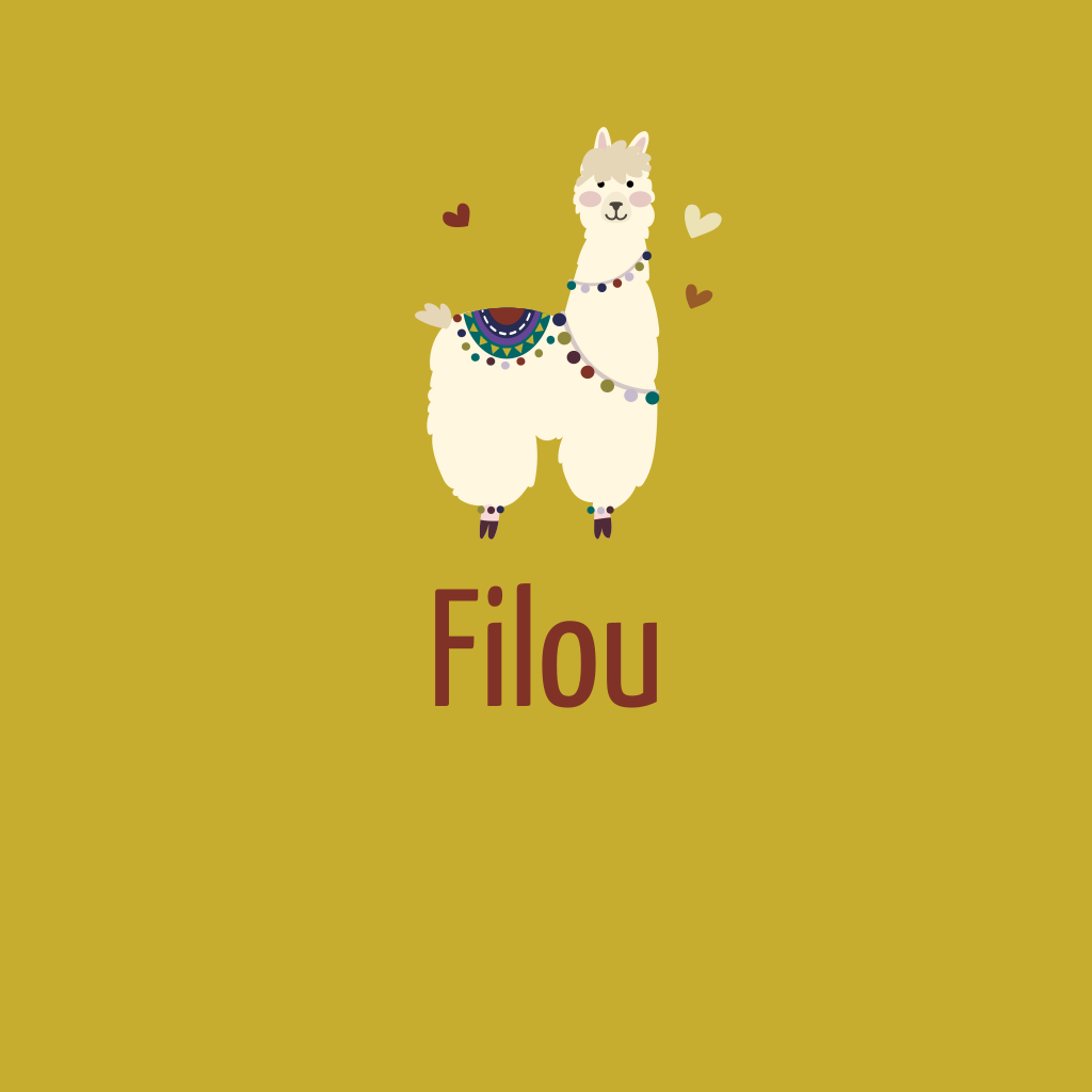 Vrolijk geboortekaartje met een getekende alpaca / lama en kleine hartjes. De achtergrondkleur is naar wens aan te passen.