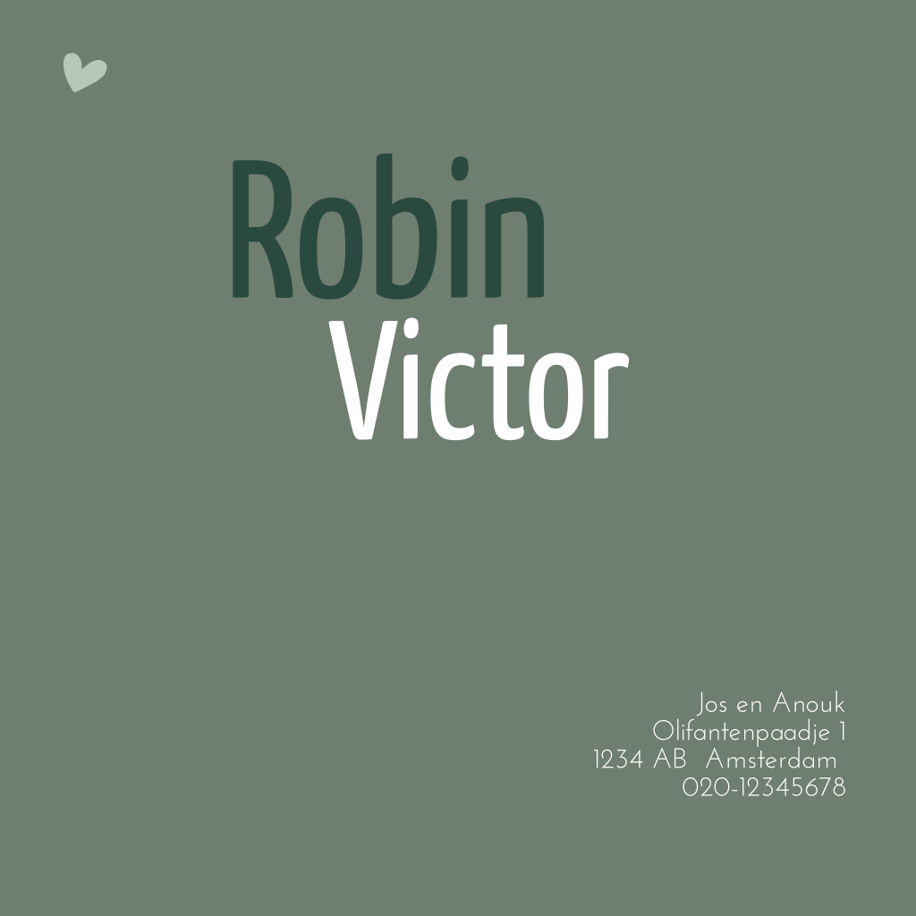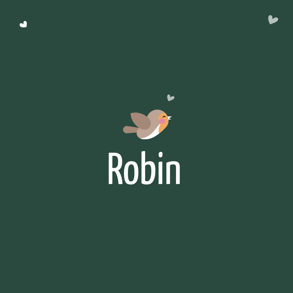Dit is een lief kaartje voor jullie pasgeboren zoon of dochter. Het kaartje heeft een mooie donkergroene achtergrond waartegen de tekening van het kleine roodborstje mooi naar voren komt. De hartjes maken dit kaartje helemaal compleet. Het kaartje kan naar wens aangepast worden in onze online editor.