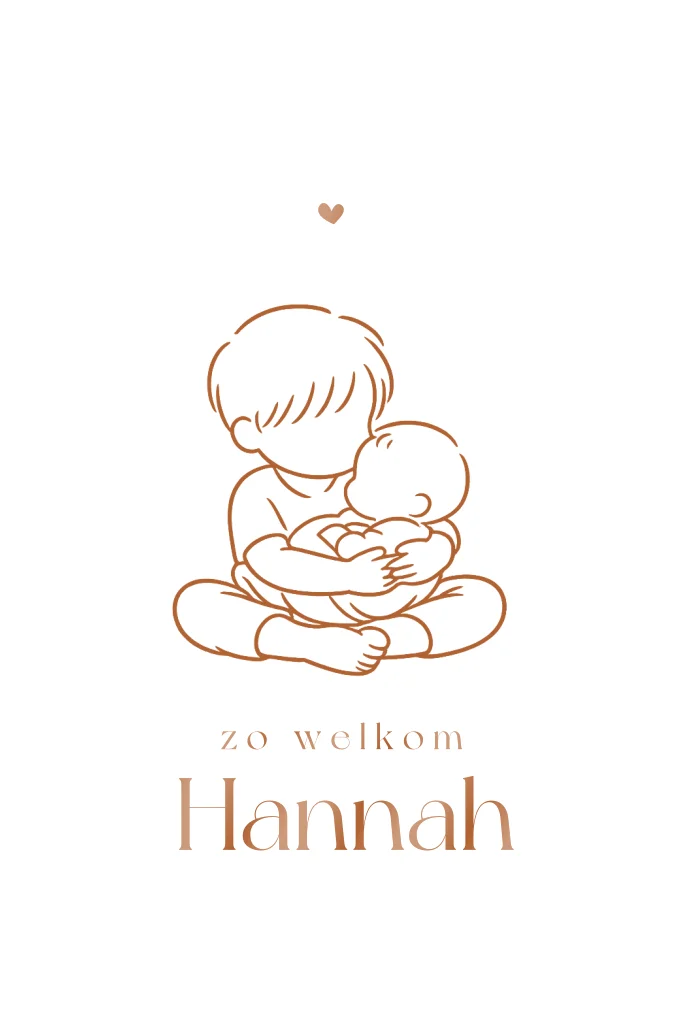 Lief geboortekaartje met lijntekening van broer en baby in hoogglans