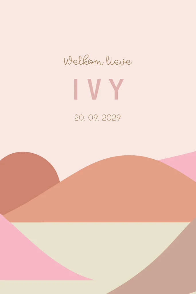 Kondig de geboorte van je dochter aan met dit kaartje. Op het kaartje is een abstract landschap met ondergaande zon te zien. Pas het kaartje naar wens aan in onze online editor.