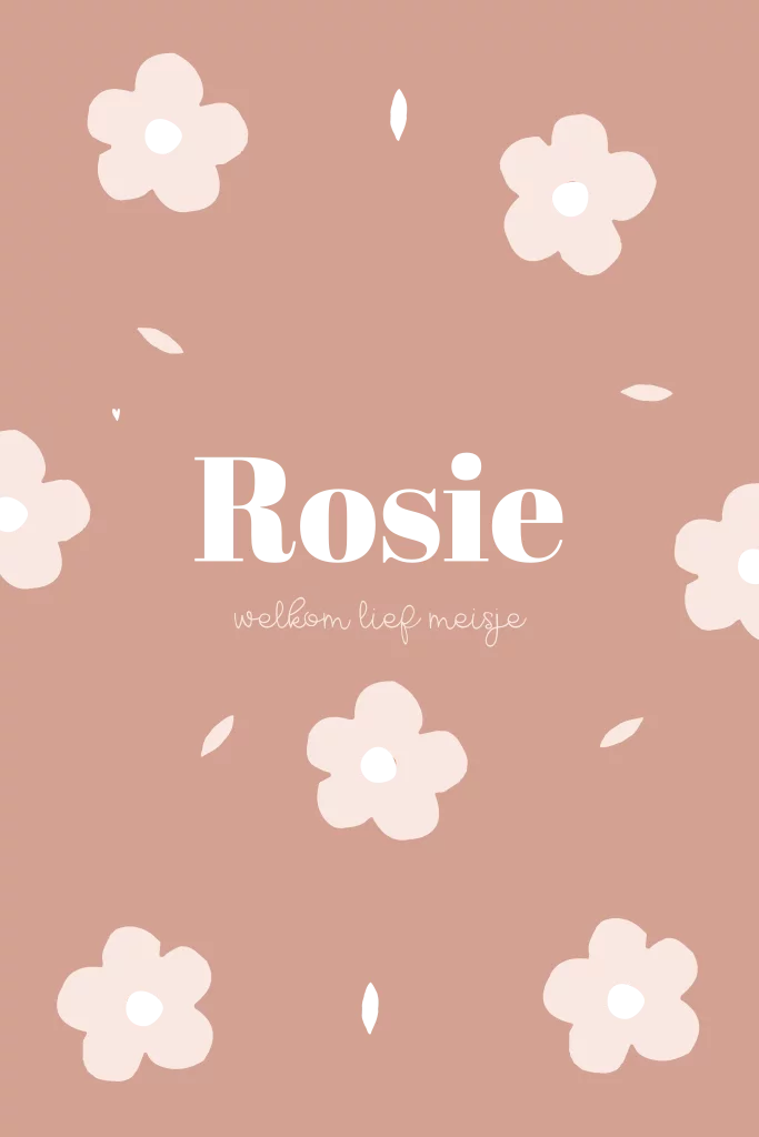 Een hip geboortekaartje voor jouw meisje. Het kaartje heeft een staand formaat en oudroze achtergrond. Op de voorgrond zie je een lief bloemetjes patroon met roségoudfolie details. Pas het kaartje naar wens aan in onze online editor.
