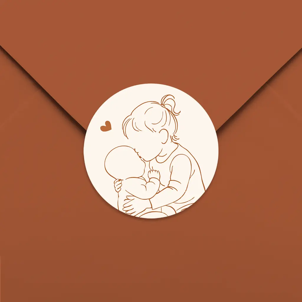 Een liefdevolle sluitsticker met een grote zus en de baby in lijntekening. Personaliseer het ontwerp eenvoudig in onze online editor.