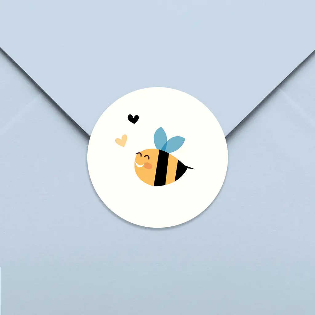 Een lieve sluitsticker met illustratie van een bij. De sticker past perfect bij het kaartje van onze designer Alma Langerak.